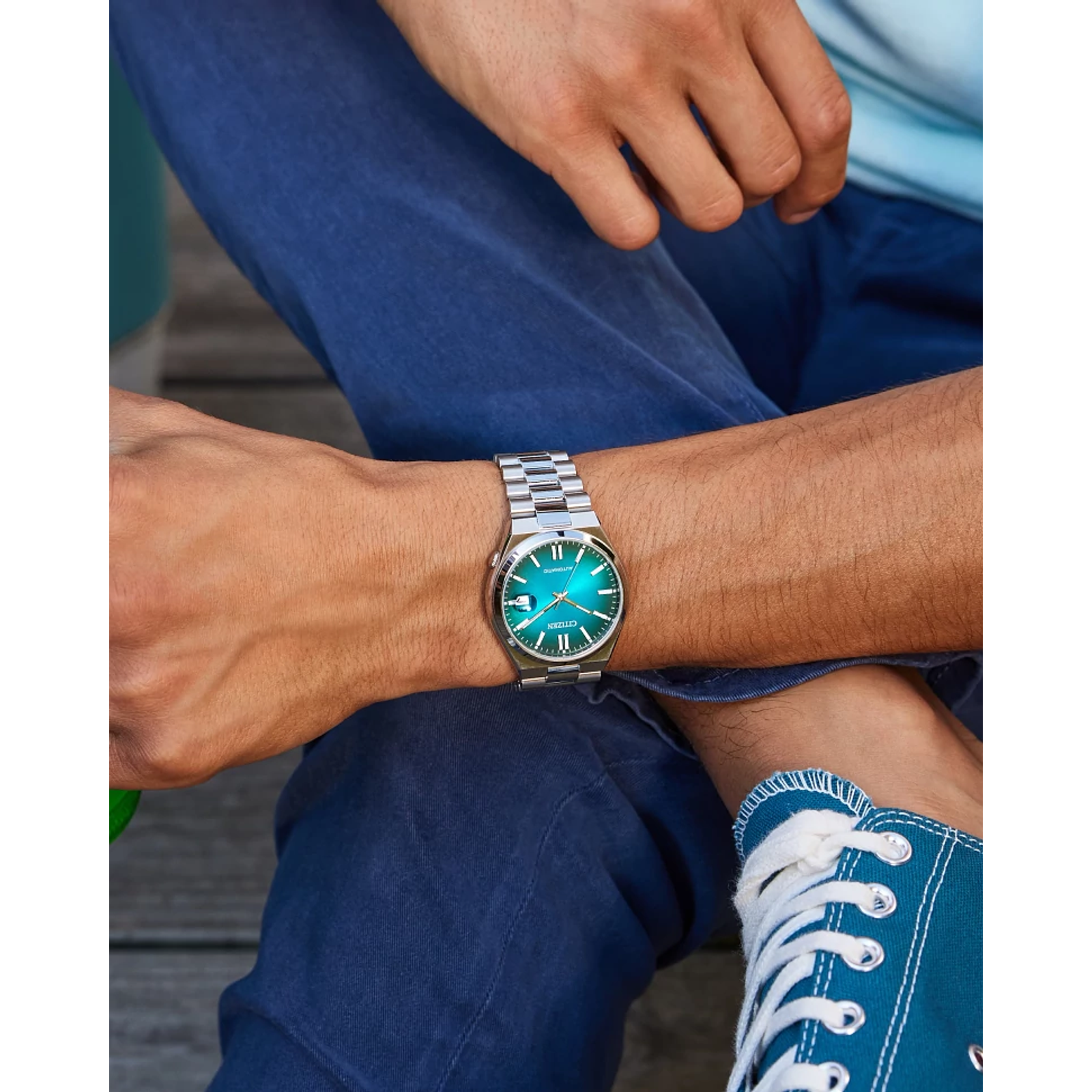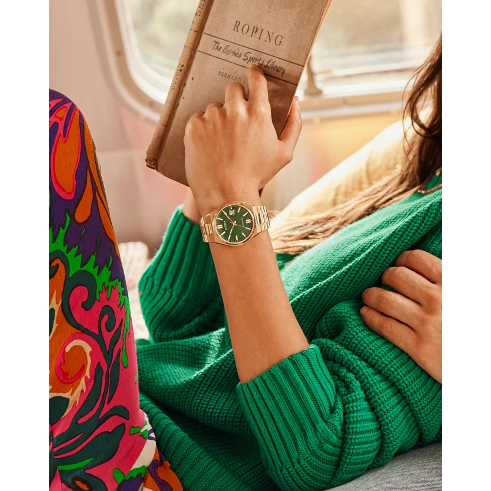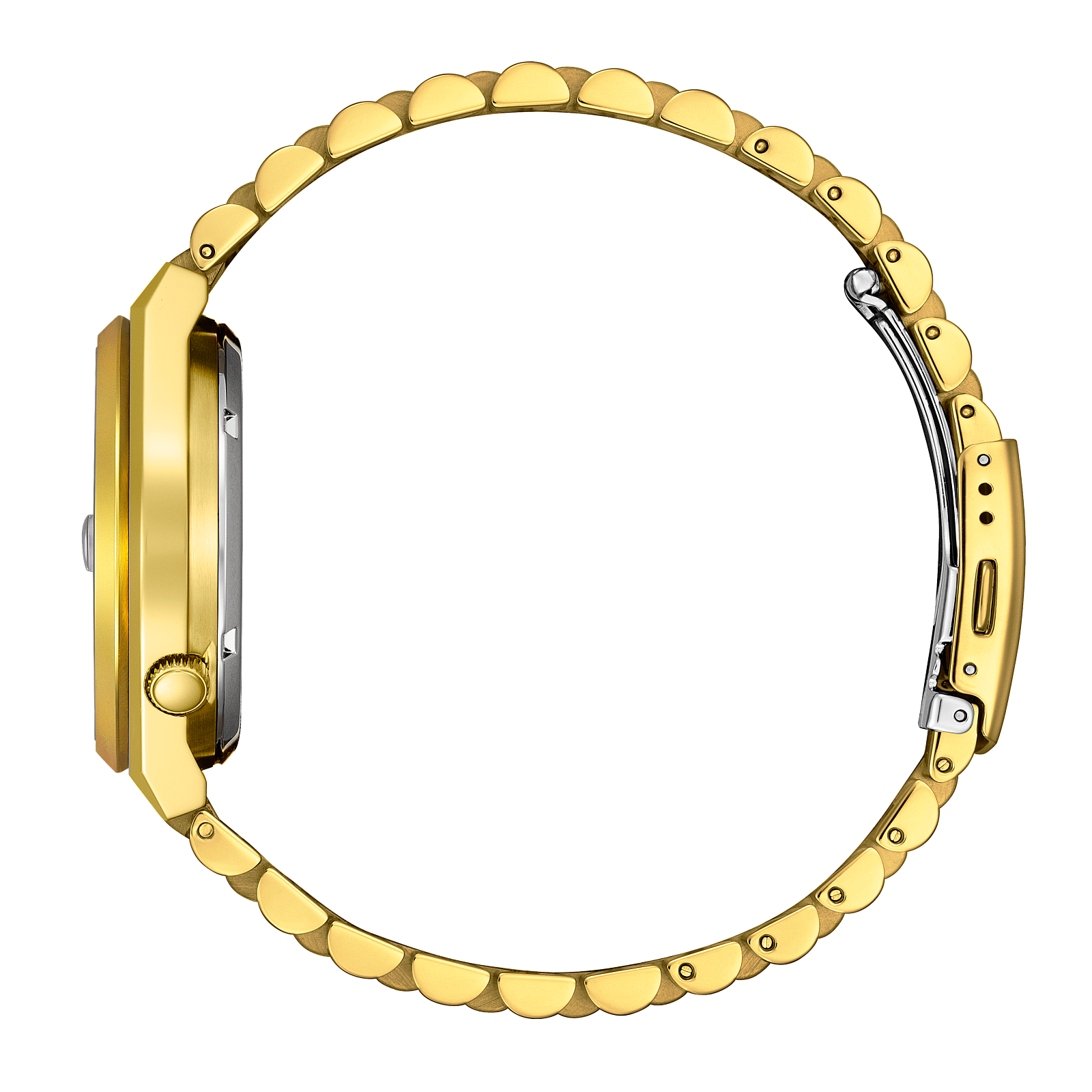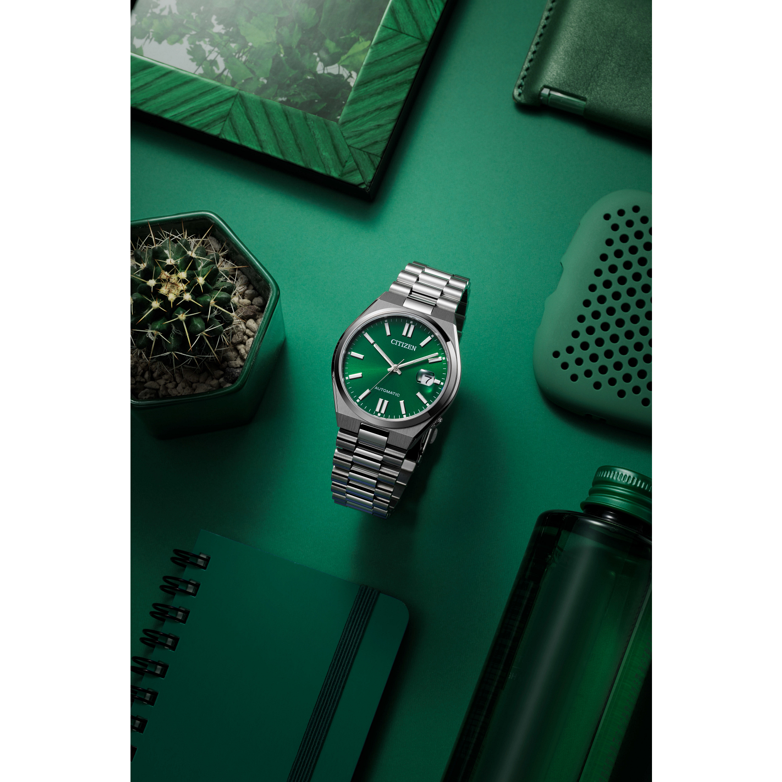 La montre automatique « Tsuyosa », de la série NJ015, apporte un style sportif ultramoderne directement à votre poignet. Réalisée dans un boîtier polyvalent de 40 mm, la conception sophistiquée de La montre fait forte impression grâce à son boîtier en acier inoxydable doré et à son bracelet assorti parfaitement intégré. Sous un verre saphir antireflet, la montre sportive utilise un cadran vert soleillé, avec un guichet de date à 3 heures et des détails dorés contrastants qui ajoutent à son esthétique classique. Alimentée par un mouvement automatique et offrant jusqu'à 50 mètres d'étanchéité, cette montre raffinée est un choix de port quotidien prêt pour le travail, les loisirs et tout ce qui se trouve entre les deux. Calibre 8210.