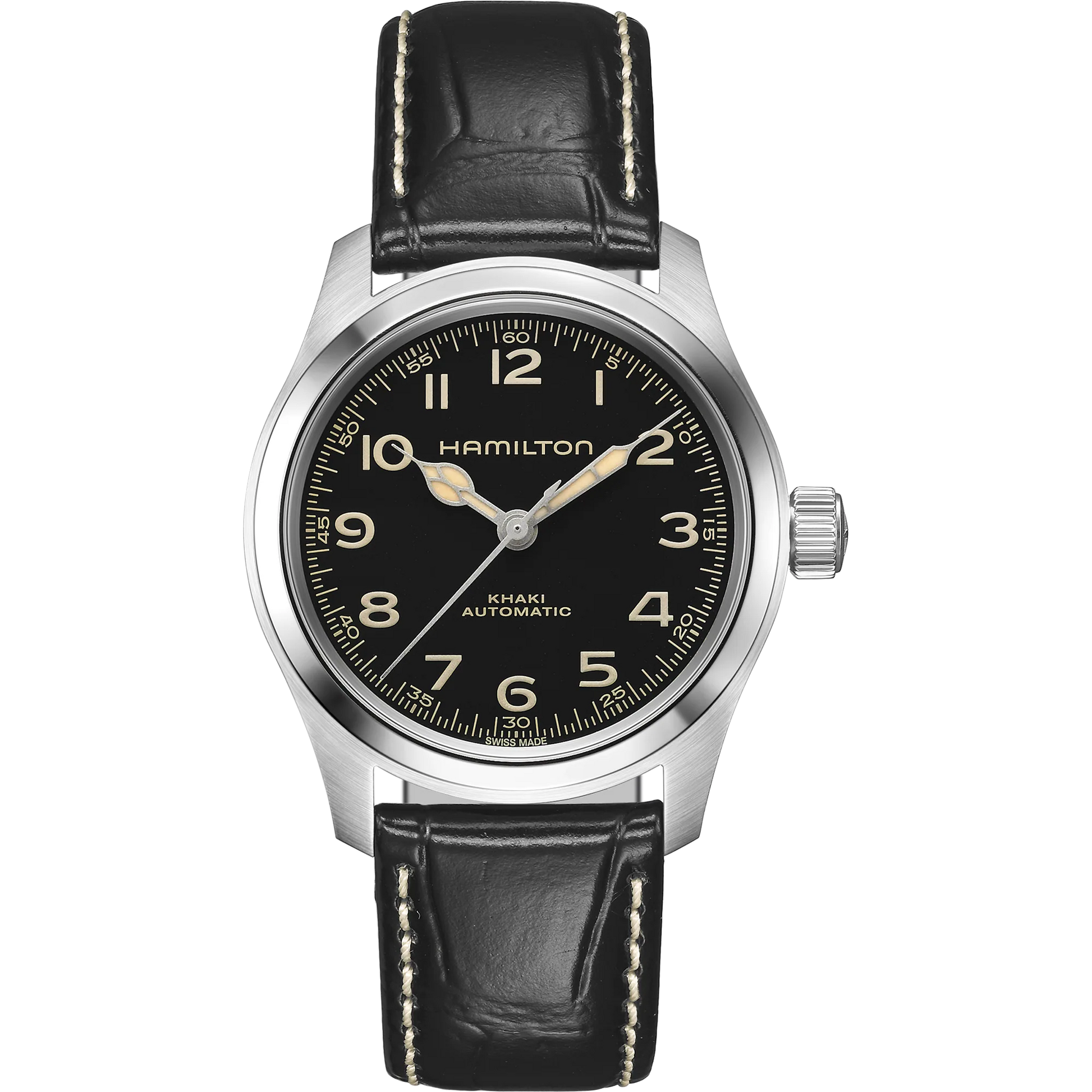 Le Khaki Field Murph Auto 38mm est là. L'une des montres de science-fiction les plus célèbres, connue par les fans sous le nom de « The Murph », est désormais logée dans un boîtier compact en acier inoxydable de 38 mm. Doté d'un cadran noir ultra lisible, d'aiguilles beiges à finition Super-LumiNova® de style vintage et d'un bracelet en cuir noir, il reflète les codes esthétiques clés de son prédécesseur de 42 mm. Propulsée par le mouvement automatique H-10 doté d'une réserve de marche de 80 heures, cette Khaki Field Murph Auto captivera le cœur de ceux qui aiment les petites montres.
