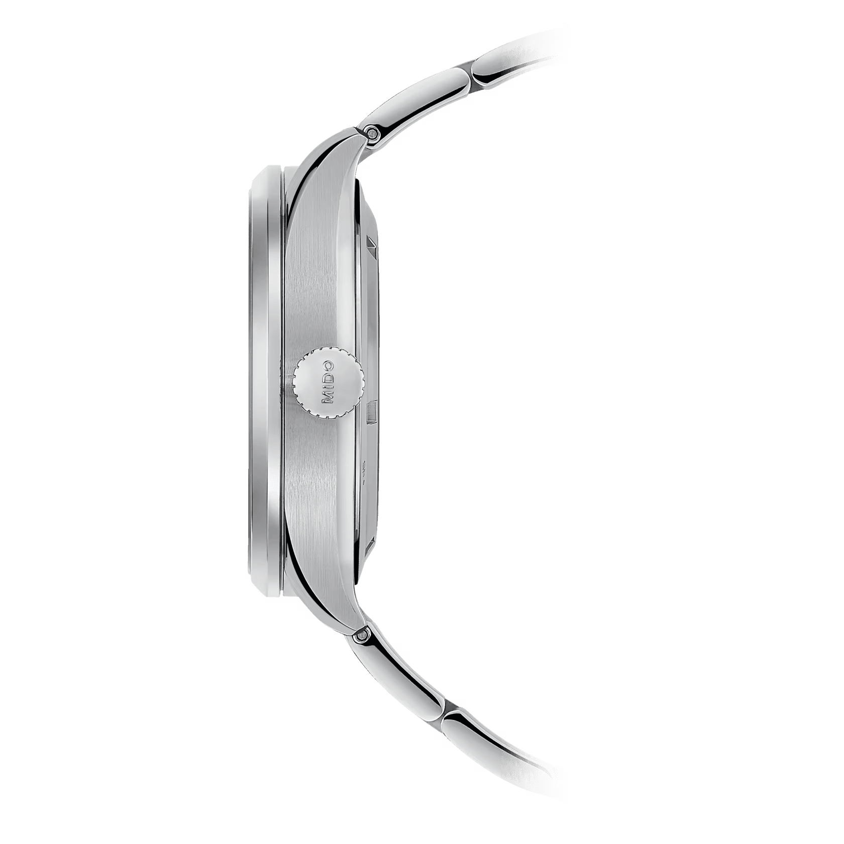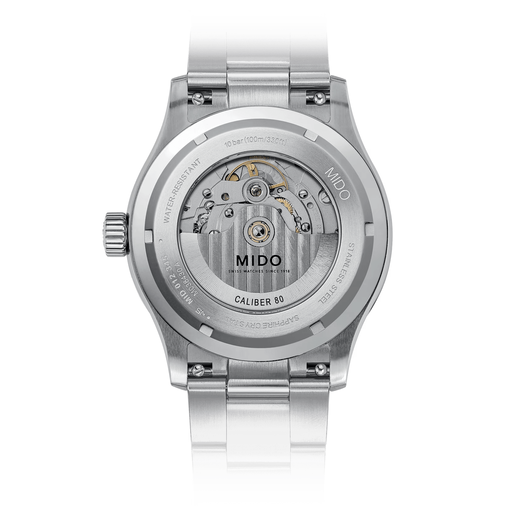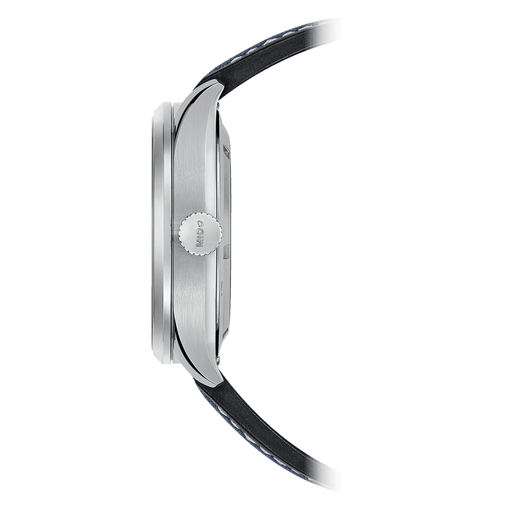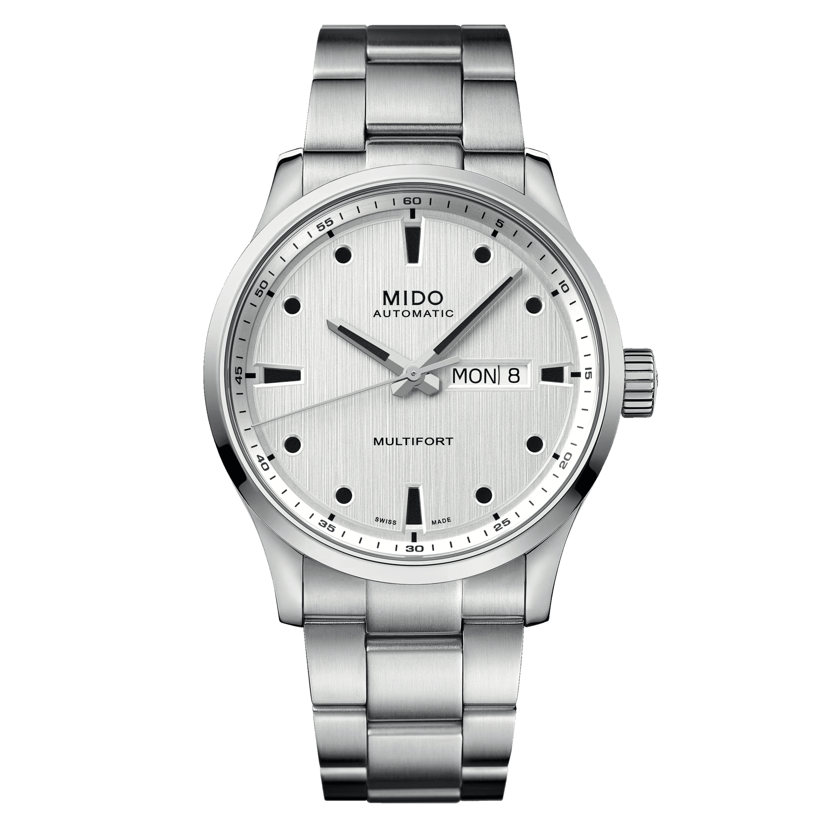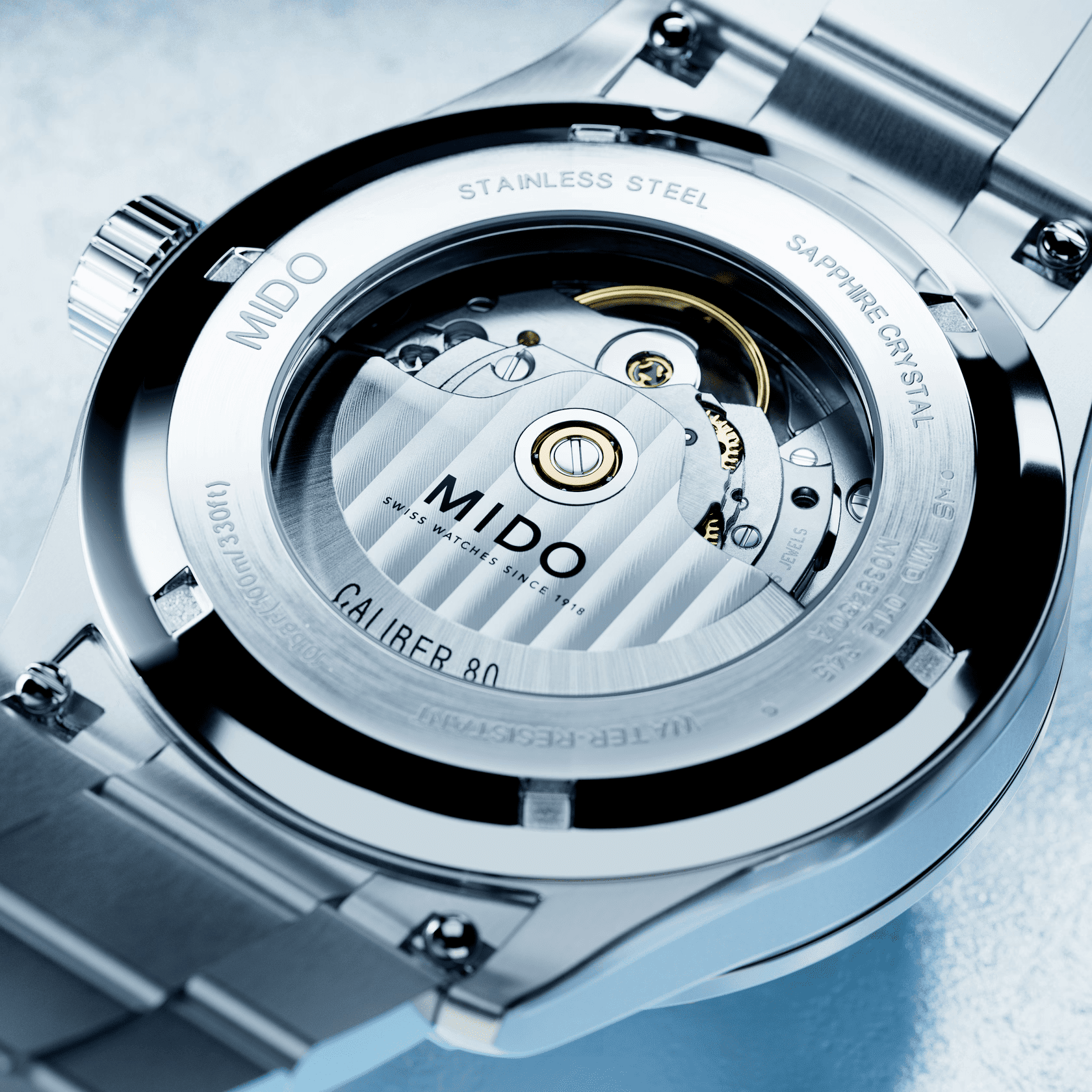 Sur le cadran dégradé de la Multifort M, une finition satinée verticale rappelle les Côtes de Genève caractéristiques de la collection. Le Super-LumiNova® immaculé crée contraste et lisibilité sur les aiguilles et les index ronds. La robustesse légendaire de la Multifort bat au rythme du célèbre Calibre 80. Sa réserve de marche pouvant atteindre 80 heures est associée à un spiral en Nivachron™ – un matériau révolutionnaire offrant une précision redoutable. MIDO propose la Multifort M avec un système de changement de bracelet sans outil, en version acier ou textile sur base caoutchouc.