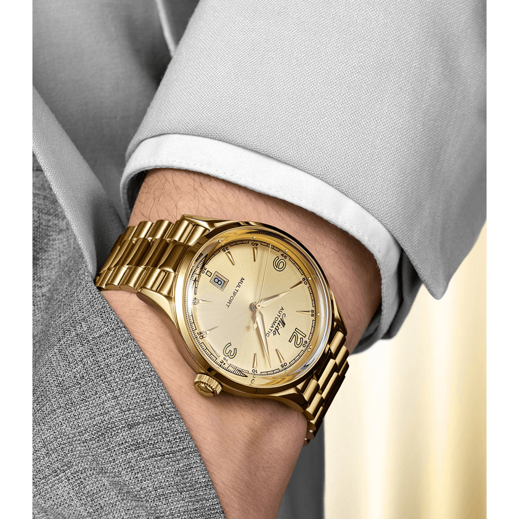 Matériau du boîtier : Acier inoxydable avec revêtement PVD couleur or jaune