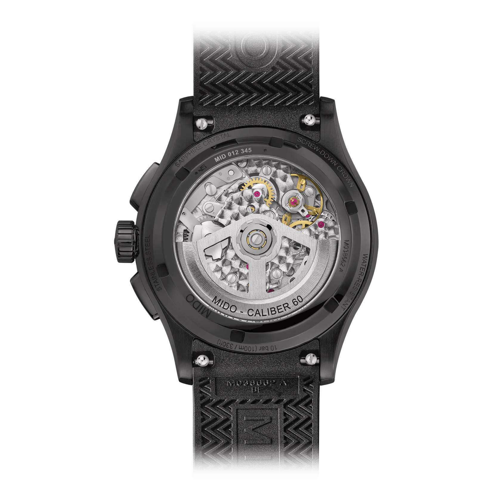 Le chronographe squelette Multifort incarne la rareté, la technologie de pointe et un savoir-faire exceptionnel. Son mouvement automatique suisse, sophistiqué et précis, est au cœur de cette montre de sport, dotée d'une fonction chronographe avancée. Le cadran squelette, orné d'aiguilles méticuleusement travaillées, révèle la complexité mécanique de la montre tout en garantissant une lisibilité optimale grâce au verre saphir traité antireflet double face. Le fond transparent met en valeur la beauté du calibre automatique 60 A05.951, un chronographe squelette développé et mis en œuvre par MIDO pour la toute première fois.