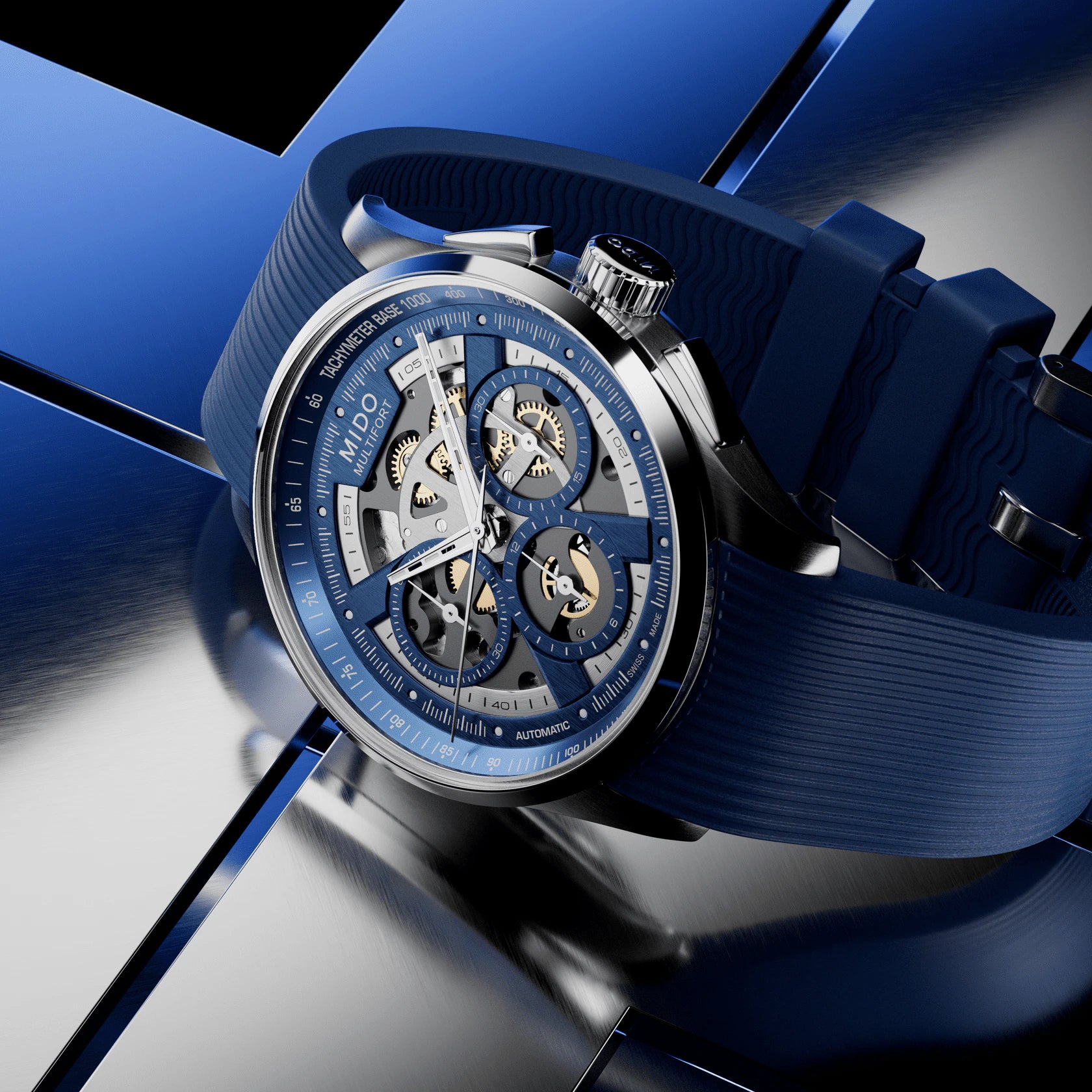 Chronographe squelette Mido Multifort Bleu