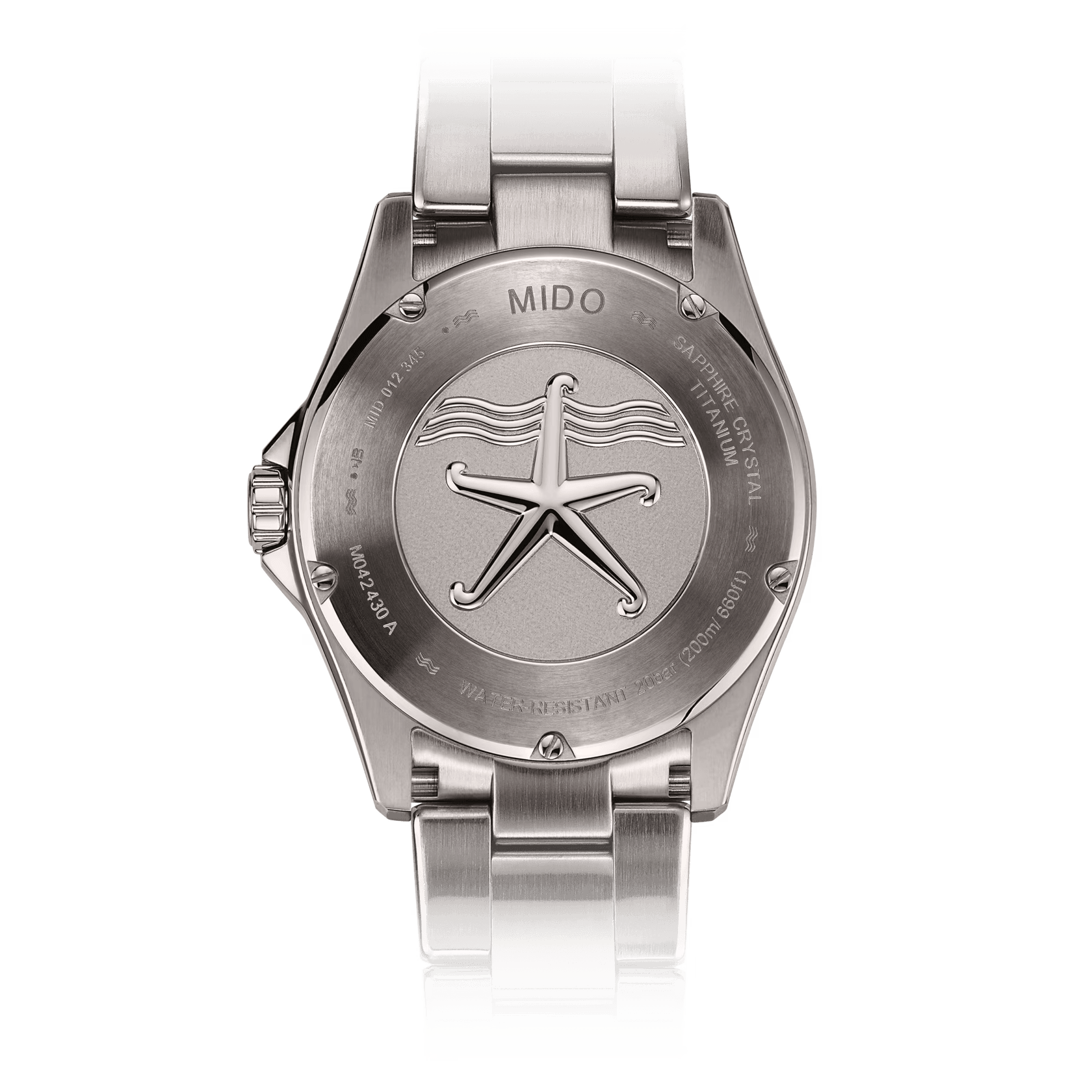 MIDO a intégré la céramique, l'un des matériaux les plus remarquables de l'horlogerie, à la lunette tournante unidirectionnelle de sa montre sportive suisse Ocean Star 200C. Le cadran est décoré d'index appliqués individuellement et revêtus de Super-Luminova® blanc. Cette montre de plongée est étanche jusqu'à 20 bars, la forme du boîtier offrant une protection supplémentaire à la couronne vissée. Le fond vissé du boîtier est gravé du logo Ocean Star. De plus, le mouvement automatique intégré offre une autonomie allant jusqu'à 80 heures.