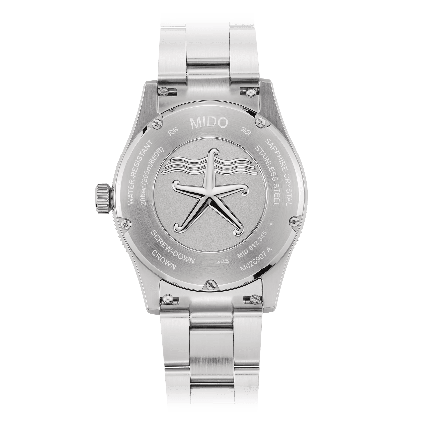 Préparez-vous à l'aventure, sur terre ou en mer, mais toujours avec style ! MIDO propose ce qui est sans conteste son modèle de montre Ocean Star le plus polyvalent, un compagnon sportif, fiable et chic pour toutes les escapades. Son diamètre parfait de 39 mm s'associe à un boîtier d'une finesse remarquable pour l'Ocean Star. L'esthétique de cette montre automatique se définit également par son cadran en relief unique et distinctif, évoquant le mouvement des courants sur le sable. Etanche jusqu'à une pression de 200 m (20 bars / 660 ft), le célèbre motif étoile de mer, emblème du savoir-faire horloger historique de MIDO en matière d'étanchéité, est présent sur son fond vissé.