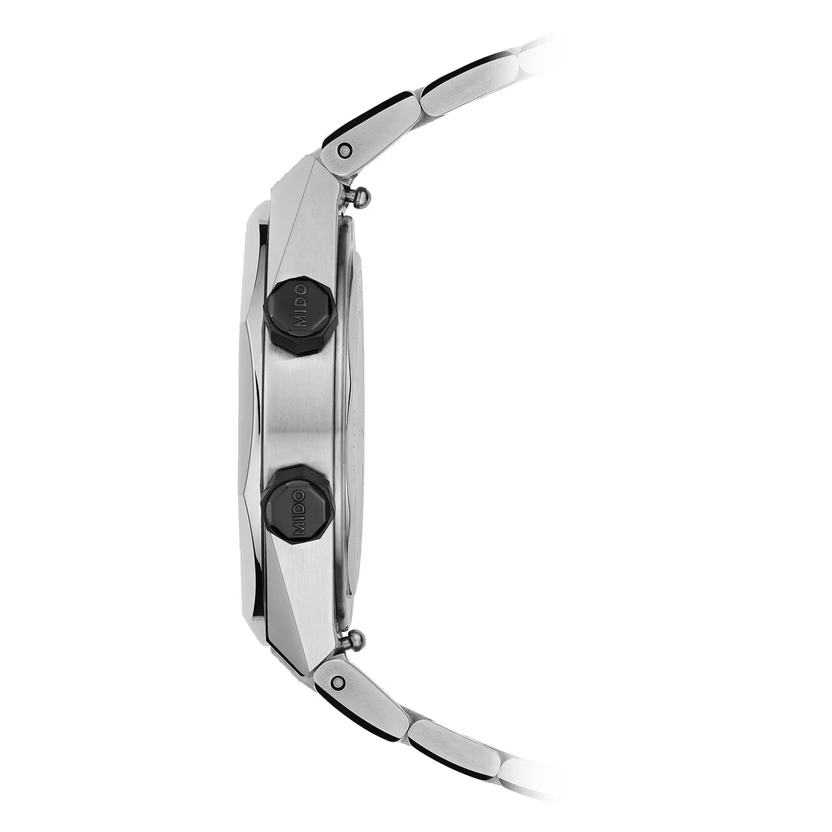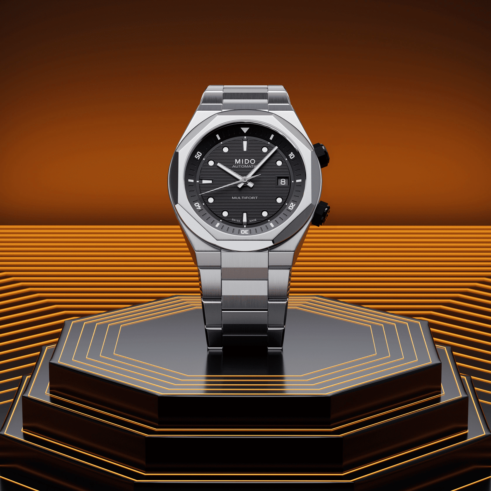 L'audace de la Multifort 8 Two Crowns révolutionne la donne ! Ce modèle visionnaire, doté d'une lunette octogonale, est sublimé par un cadran estampé en relief horizontal, tandis que le Super-LumiNova® blanc améliore la visibilité des index. Ce garde-temps puissant réinvente les codes et crée une nouvelle dimension : la TECHNOMETRIE, alliance parfaite de TECHNOLOGIE et de GÉOMÉTRIE. Il est équipé d'un réhaut interne rotatif, actionné par une seconde couronne située à 2 heures, tandis que les heures et la date se règlent via la couronne à 4 heures. Ce modèle abrite le Calibre 72 à technologie Nivachron™, un mouvement spécifiquement choisi pour sa finesse et sa fiabilité exemplaire, capable de relever les défis du quotidien, aujourd'hui comme demain.