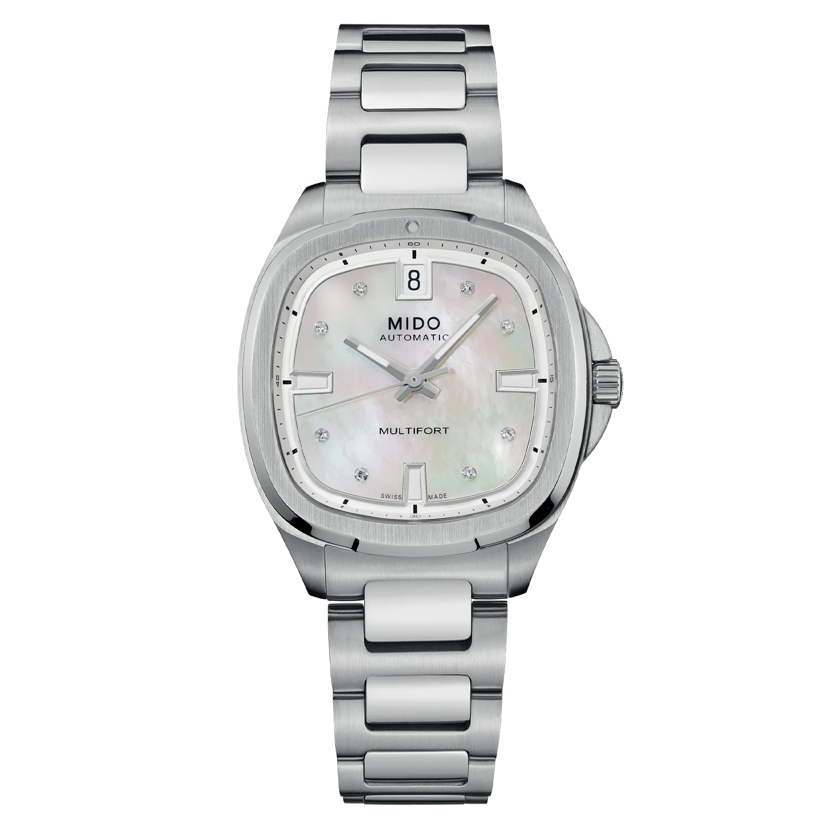MIDO ajoute une taille à la collection à succès Multifort TV. Sans rien perdre de sa silhouette culte en forme de téléviseur, la Multifort TV 35 - avec ses dimensions de 35 x 34,2 mm - fait une entrée remarquée dans une version fascinante aux dimensions parfaitement polyvalentes. Une particularité : son épaisseur est réduite au maximum, grâce à son mouvement automatique Calibre 72, réputé pour sa finesse et sa fiabilité exceptionnelle garantie par un spiral Nivachron™ de haute technologie. L'allure unique de ce modèle séduira tous les poignets dans n'importe quelle combinaison de cadran, offrant un sublime mélange des éléments de design caractéristiques de la collection.