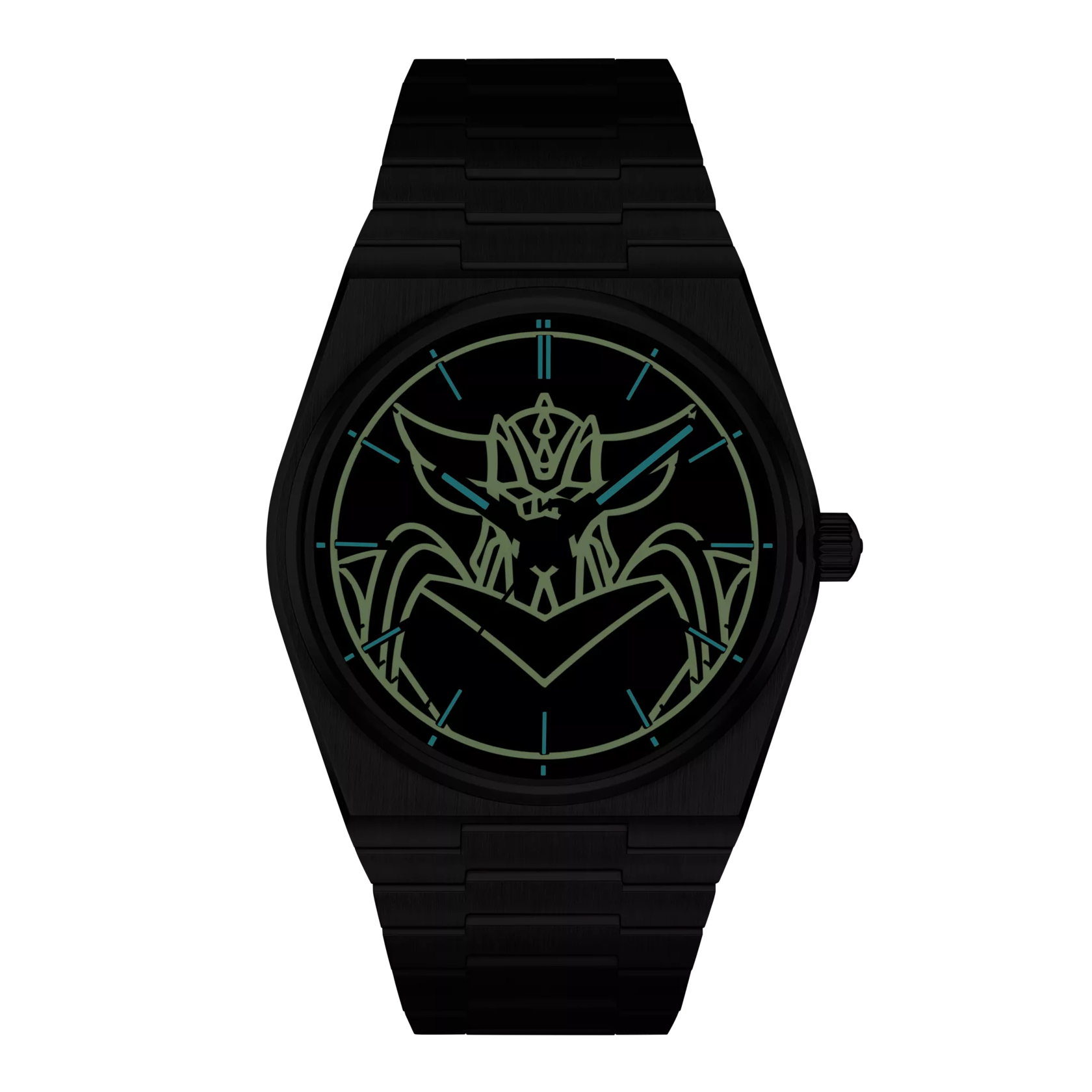 The Tissot PRX Ufo Robot Grendizer merges 70s design with manga anime elements. It features a 40mm case, made of 316L stainless steel and an interchangeable quick-release bracelet. The dial glows with a Super-LumiNova® bust of Grendizer, complemented by a Harken-style second hand and engraved rotor, evoking nostalgia for fans of the serie. Powered by the Powermatic 80 Swiss automatic movement, it offers an 80-hour power reserve. With a see-through case back and scratch-resistant sapphire crystal with antireflective coating, this watch is an all-in-one that blends modern watchmaking with 70s designs and iconic manga culture.