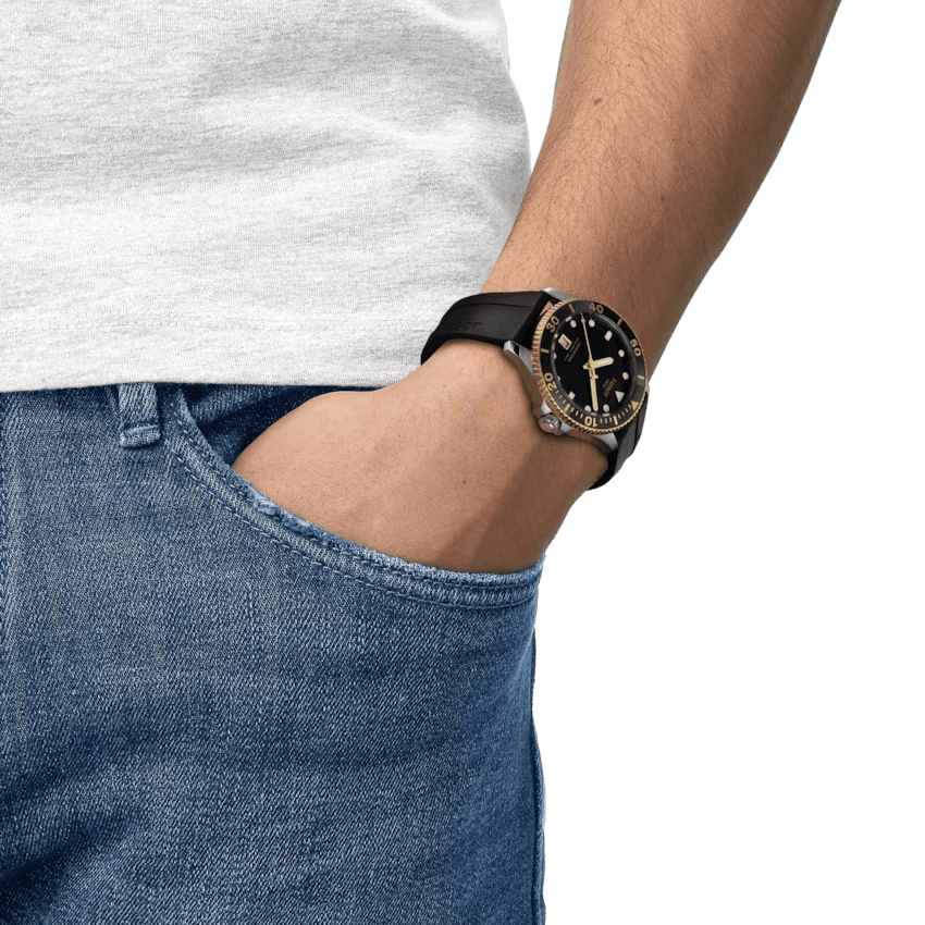 Du premier coup d'œil à l'utilisation quotidienne, le modèle Seastar 1000 Quartz 40 mm transmet style, performance et polyvalence. Chaque modèle est un mariage harmonieux d'élégance et de technologie, alliant savoir-faire horloger suisse et design éternel. Cette taille de boîtier extrêmement polyvalente est conçue pour répondre aux besoins des personnes à la recherche d'une montre chic et de bon goût, capable de passer du jour à la nuit tout en promettant des performances techniques exceptionnelles. Comme les modèles 36 mm et 45,5 mm existants, ces pièces tirent leur nom de leur certification d'étanchéité de 1 000 pieds, soit 30 ATM ou 300 mètres. Elles sont dotées de lunettes rotatives unidirectionnelles pour chronométrer de manière fiable l'activité sous-marine. La lisibilité dans des conditions de faible luminosité est encore améliorée par l'application de Super-LumiNova® sur les aiguilles et les index des montres. Les bracelets et les bracelets peuvent être interchangés grâce au système de changement rapide de bracelet simple d'utilisation de Tissot, offrant au propriétaire la possibilité de choisir parmi une large gamme de bracelets Tissot compatibles et de personnaliser sa montre en fonction de son humeur ou de l'occasion.