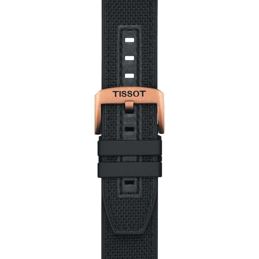 Cette montre chronographe Tissot T-Race MotoGP 2019 pour homme, édition limitée, rend hommage à l'association de Tissot avec le MotoGP™ et a été spécialement conçue pour les passionnés de moto. Cette montre sportive est dotée d'aiguilles et d'index lumineux couleur or rose, d'un guichet de date à 3 heures, de trois compteurs de chronographe et d'un tachymètre sur le pourtour extérieur ; le tout avec des détails et des détails inspirés du cadre et des pièces d'une moto. Le boîtier est en acier inoxydable avec revêtement PVD noir et or rose et arbore une lunette à disque de frein. Dans la continuité du thème de la moto, le fond du boîtier est gravé du logo officiel du MotoGP™ et les poussoirs sont gravés des mots Start et Reset, rappelant le réglage des commandes d'une moto de course. Ce garde-temps s'adapte parfaitement à votre poignet grâce à son bracelet et sa boucle en caoutchouc noir. Animée par un mouvement à quartz suisse, vous pouvez compter sur sa précision.