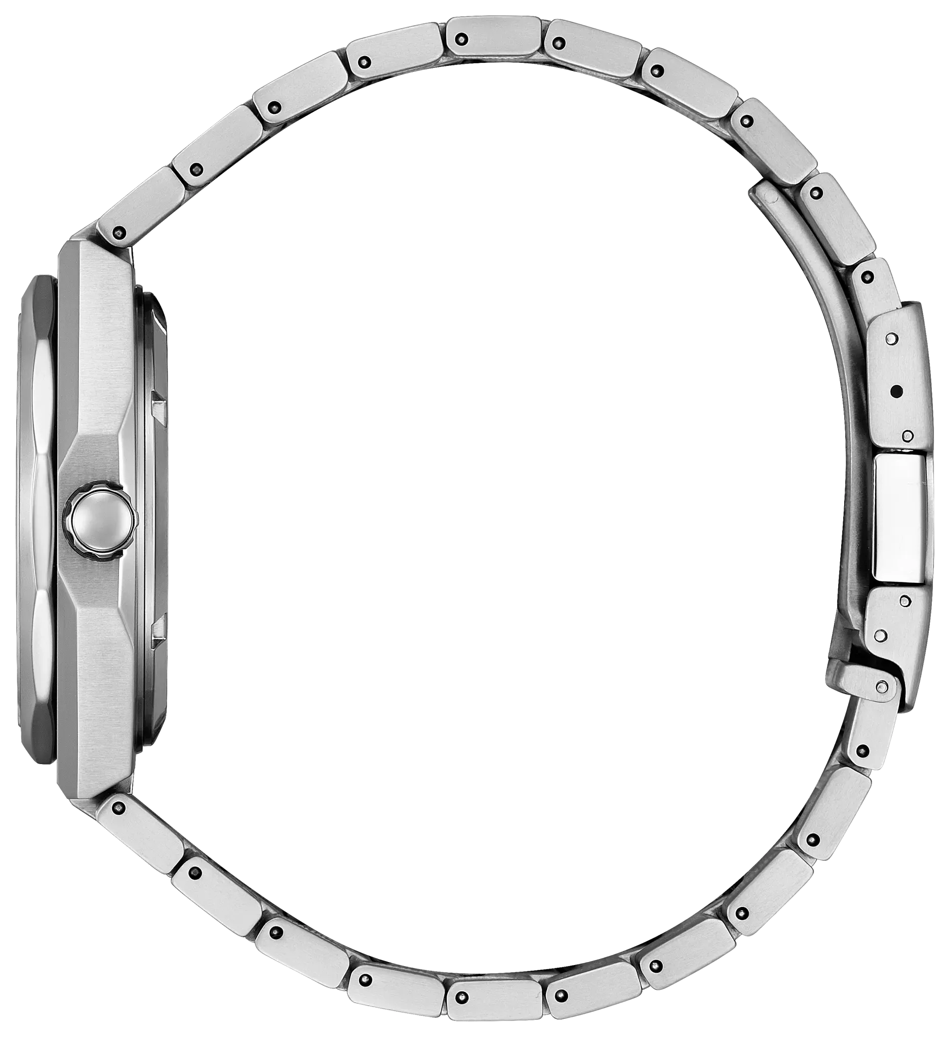 Pairing classic proportions and innovative technology with a distinctly modern style, we present our new Integrated Super Titanium™ Automatic series. Made with our proprietary material, Super Titanium™, which is five times harder and 40% lighter than stainless steel and is scratch- and rust-resistant, this sporty timepiece features a 40.5mm silver-tone Super Titanium™ case that is elevated with finely brushed and polished finishing while being secured to the wrist with an integrated matching bracelet. On the dial, a textured blue colour is accented with an outer minute ring in black, with silver-tone details and luminous hands and markers. A date window at the 3 o'clock position adds daily utility, while an off-centre sub-dial beside it indicates the running time powered by the mechanical movement inside. Water resistant to 100 metres. Automatic calibre 8213.