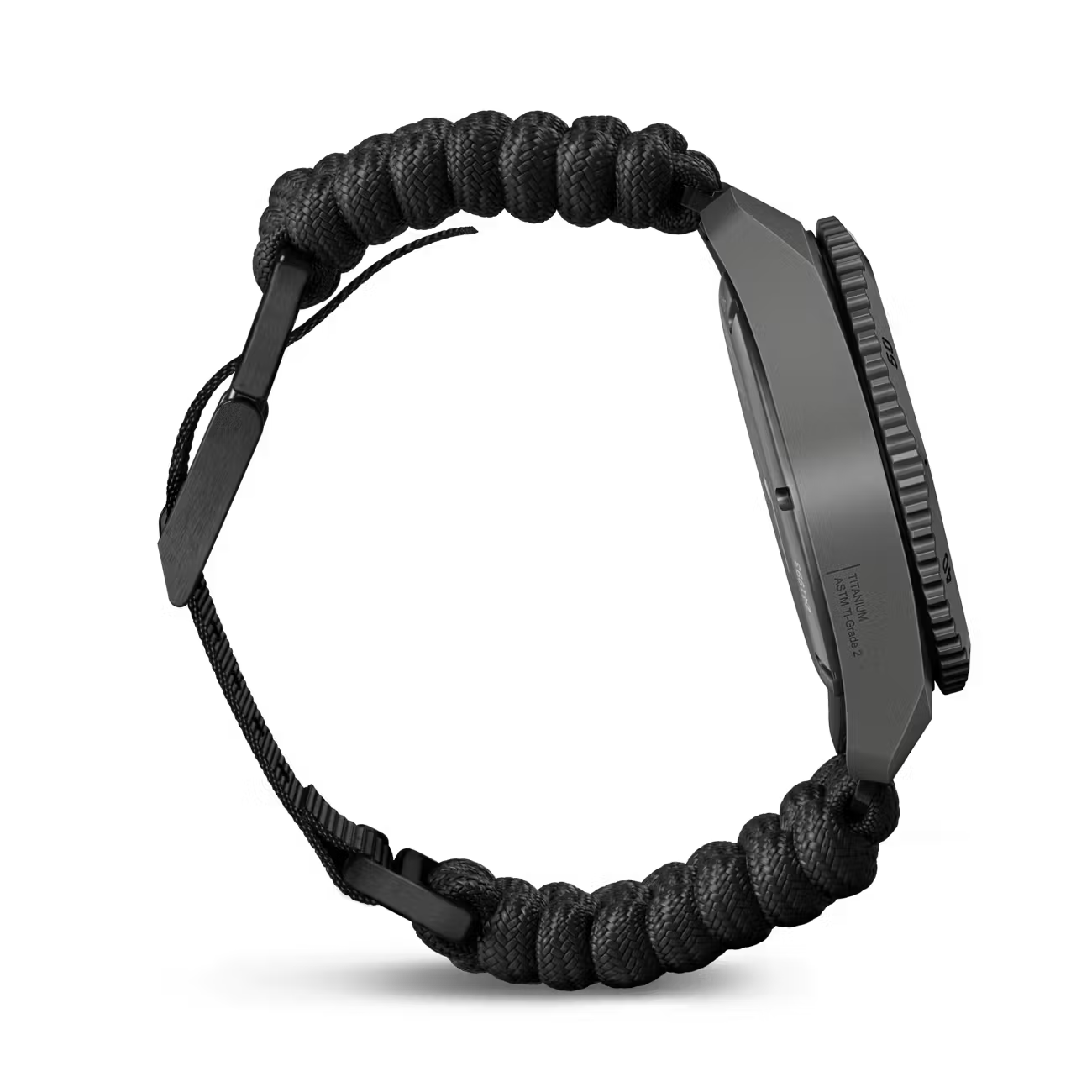 Dexterous to the last detail: Dive Pro Quartz is the seamless fit for the most discerning diver. Prepared for any underwater challenge, it excels in its intelligent thinking. Decked out in resilient titanium, with a paracord strap and unidirectional bezel featuring high-visibility 20-minute time intervals. Let it help you master the ocean.